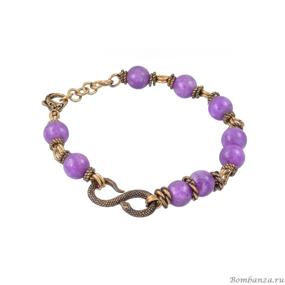 Браслет премиум класса.Браслет с аметистом от итальянского бренда Alcozer&J. Крупная вставка из аметиста — центральный акцент изделия. Аметист известен своими магическими свойствами и имеет глубокий фиолетовый оттенок, который придает украшению загадочность и элегантность. Металл с покрытием «античное золото» гармонично подчеркивает красоту камня и придает браслету винтажный вид. Браслет выполнен из прочного бижутерного сплава, что гарантирует долговечность и комфортное использование. Удобный замок-карабин обеспечивает надежную фиксацию на запястье. Каждое украшение Alcozer&J подобную маленькому скульптурному стихотворению воспевает итальянское качество и глубокое содержание.