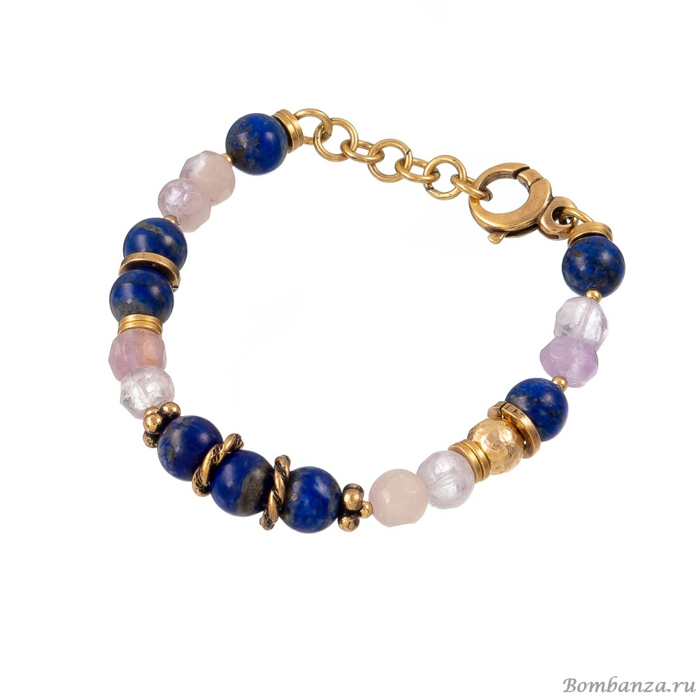 Браслет премиум класса.Браслет с лазуритом и аметистом от итальянского бренда Alcozer&J. Украшение выполнено из прочного бижутерного сплава с покрытием под античное золото, что придает браслету винтажный шарм и особый характер. Центральными элементами композиции выступают вставки из глубокого синего лазурита и нежного аметиста, которые не только украшают изделие, но и обладают символическим значением: лазурит считается камнем мудрости и внутренней гармонии, а аметист — талисманом спокойствия и вдохновения. Надежный замок-карабин обеспечивает комфортное ношение.