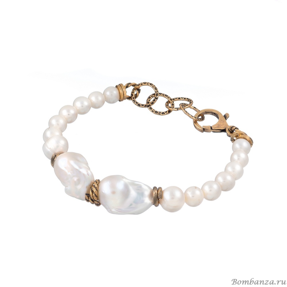 Браслет премиум класса.Браслет с жемчугом от итальянского бренда Alcozer&J. Основу изделия составляет прочный ювелирный сплав цвета «античное золото», что придаёт браслету винтажный вид. Особое внимание привлекает натуральный жемчуг — символ чистоты и изящества. Каждый жемчужный элемент гармонично вписан в общий дизайн, подчёркивая уникальность и стиль обладательницы, даря ощущение утонченной роскоши.