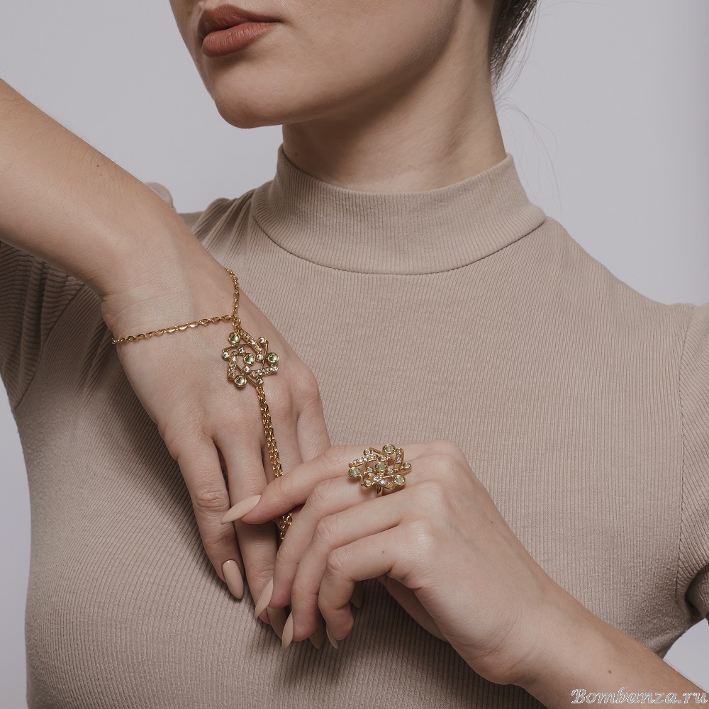 Элегантный браслет слейв Boccadamo из бронзы, покрытой желтым золотом, с белыми и зелеными кристаллами идеально подойдет к летним образам.