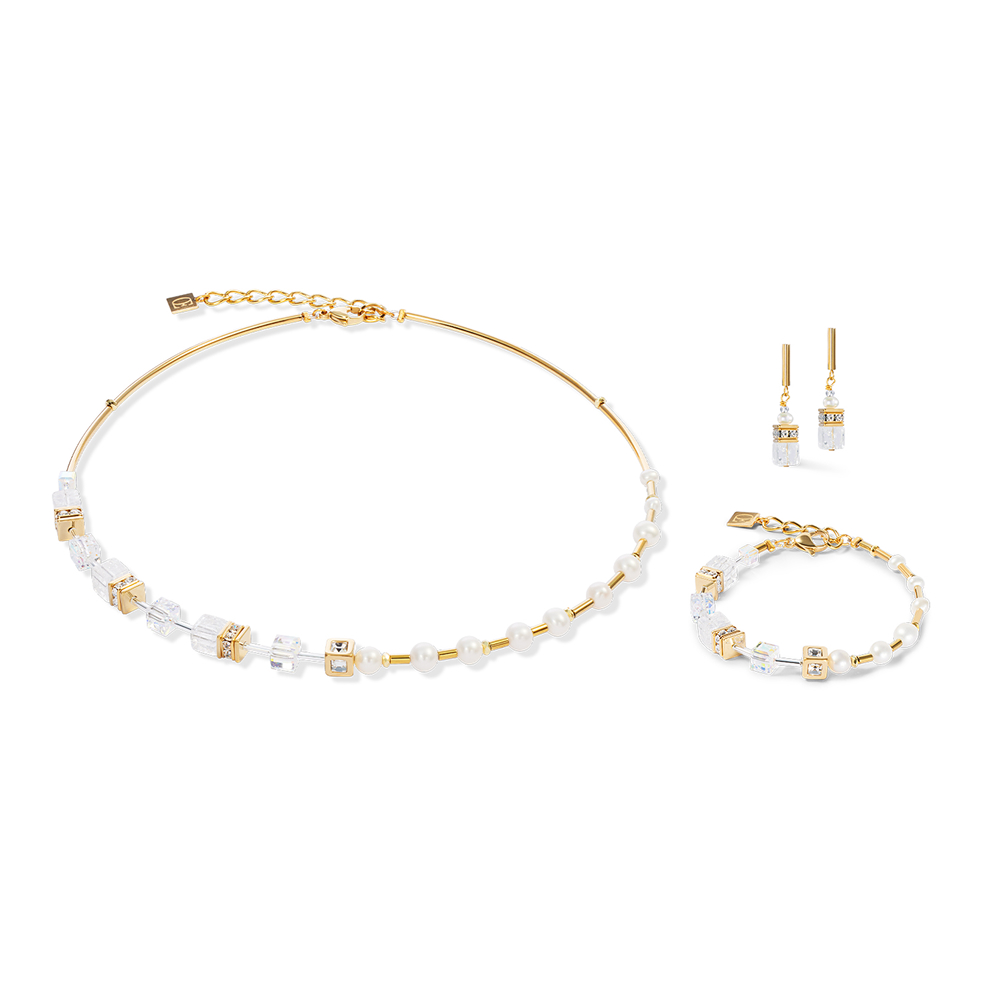 Браслет GeoCUBE® Fusion Precious Pearl Mix в золотисто-белом цвете сочетает в себе кристаллы Swarovski точной огранки, сияющий горный хрусталь и нежный пресноводный жемчуг в уникальной композиции. Элементы золотого цвета из нержавеющей стали создают современный и элегантный образ. Стильный аксессуар для особых случаев — как в качестве ненавязчивого украшения, так и в качестве идеального свадебного аксессуара.