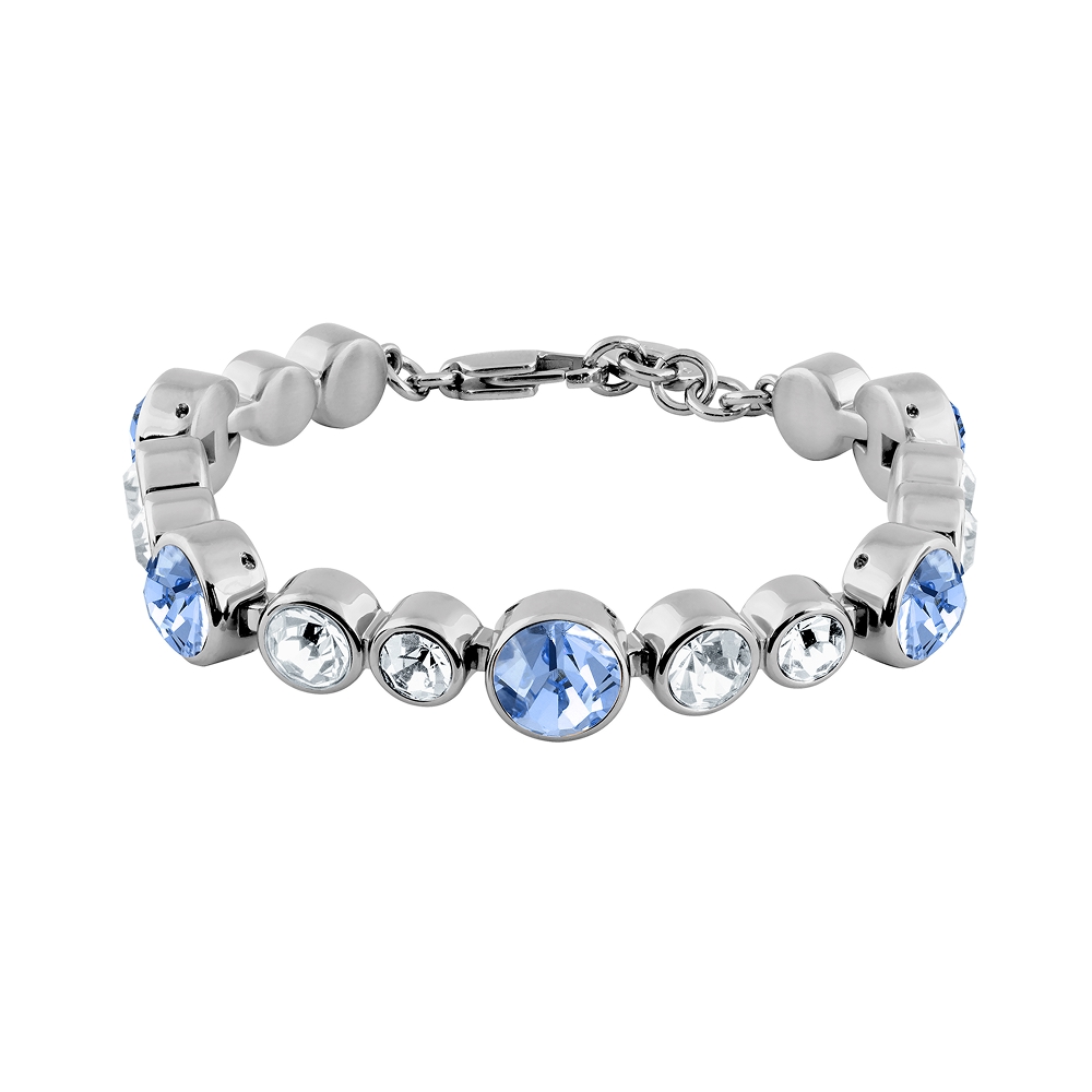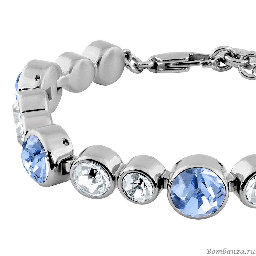 Размер изделия: 17 см + удлинитель Масса изделия: 36 г CALICE — это массивный и привлекающий внимание браслет-цепочка с рядом огранённых кристаллов разных размеров для необычного внешнего вида. Изготовлен из нержавеющей стали, покрыт и отполирован до совершенства. Здесь представлено модное сочетание классических белых и светло-сапфировых кристаллов на серебристом фоне. Датский дизайн, без никеля.