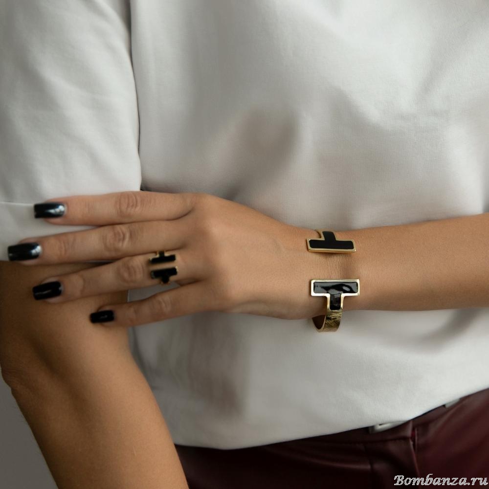 Браслет Francesca Bianchi, кафф, с эмалью, FB25.2-27B черный, 7см.