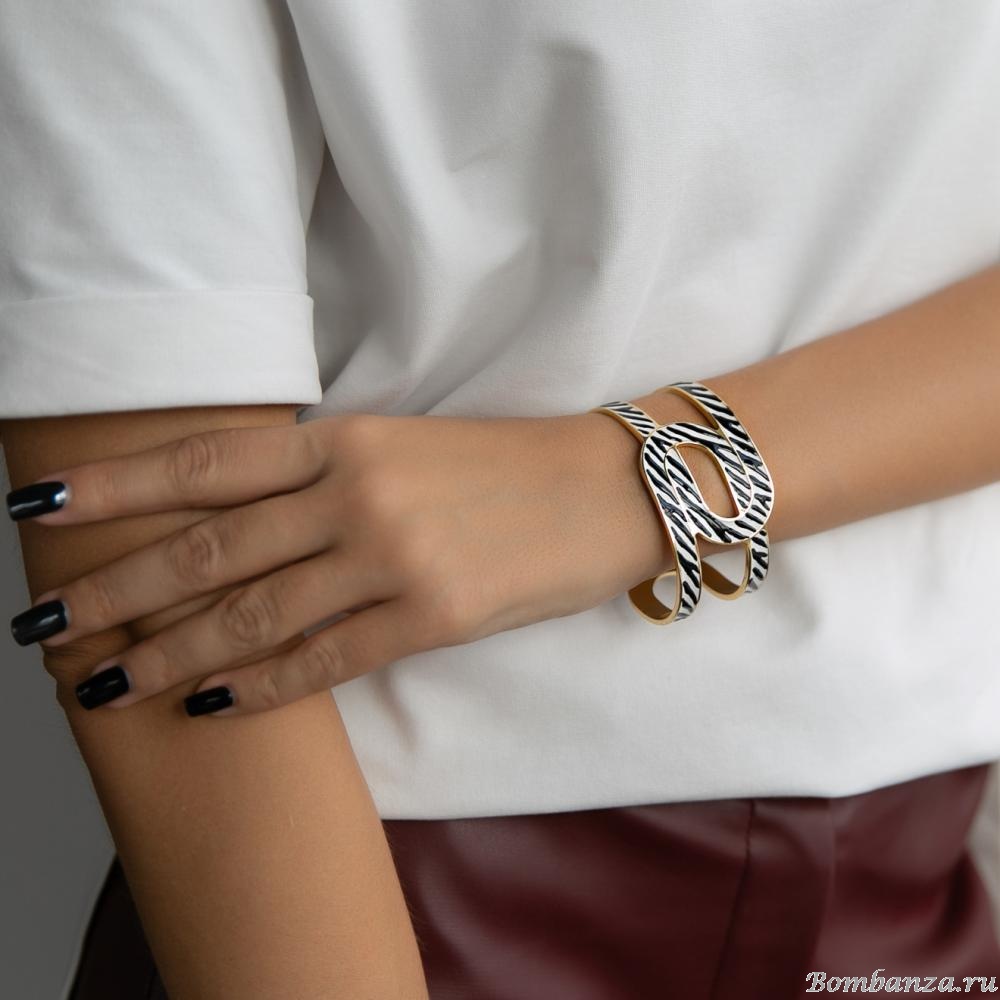 Основа материал для браслета: ювелирный сплавБраслет-кафф с эмалью от Francesca Bianchi — изысканное украшение для ценителей оригинальной итальянской бижутерии. Этот браслет идеально дополнит как повседневный, так и вечерний образ, придавая ему нотку элегантности и современного шика. Изделие выполнено из высококачественного бижутерного сплава с изящным покрытием золотом 24К. Особое внимание привлекает роспись эмалью, которая добавляет украшению уникальности и утончённости. Благодаря своему необычному дизайну в виде каффа, браслет гармонично облегает запястье, создавая эффектное акцентное украшение. Уникальный дизайн изделия вдохновлён современными итальянскими тенденциями в мире моды — бренд Francesca Bianchi славится утончённым вкусом, мастерством исполнения и предназначен для амбициозных и решительных женщин.