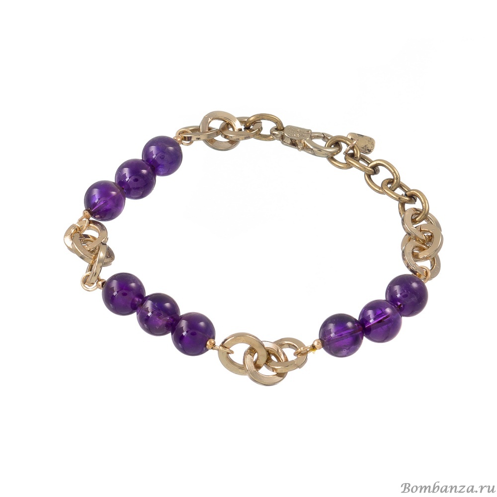 Основа материал для браслета: ювелирный сплавБраслет Elisir с аметистом от итальянского бренда Lanzerotti. В центре дизайна — натуральный аметист, который придаёт украшению особую утонченность и неповторимый шарм. Гладкие фиолетовые камни аметсита гармонично сочетаются с золотистым оттенком металлической основы из прочного бижутерного сплава, создавая эффектный контраст. Аметист успокаивает ум и способствует развитию интуииции. Основа браслета выполнена из бижутерного сплава высокого качества, который надолго сохраняет свой первоначальный вид. Удобный замок-карабин обеспечивает надежную фиксацию и простоту надевания.