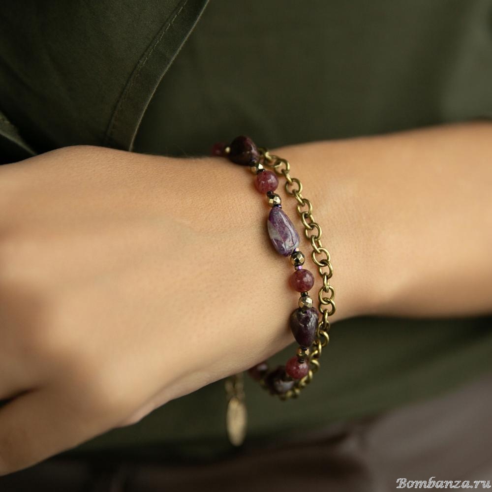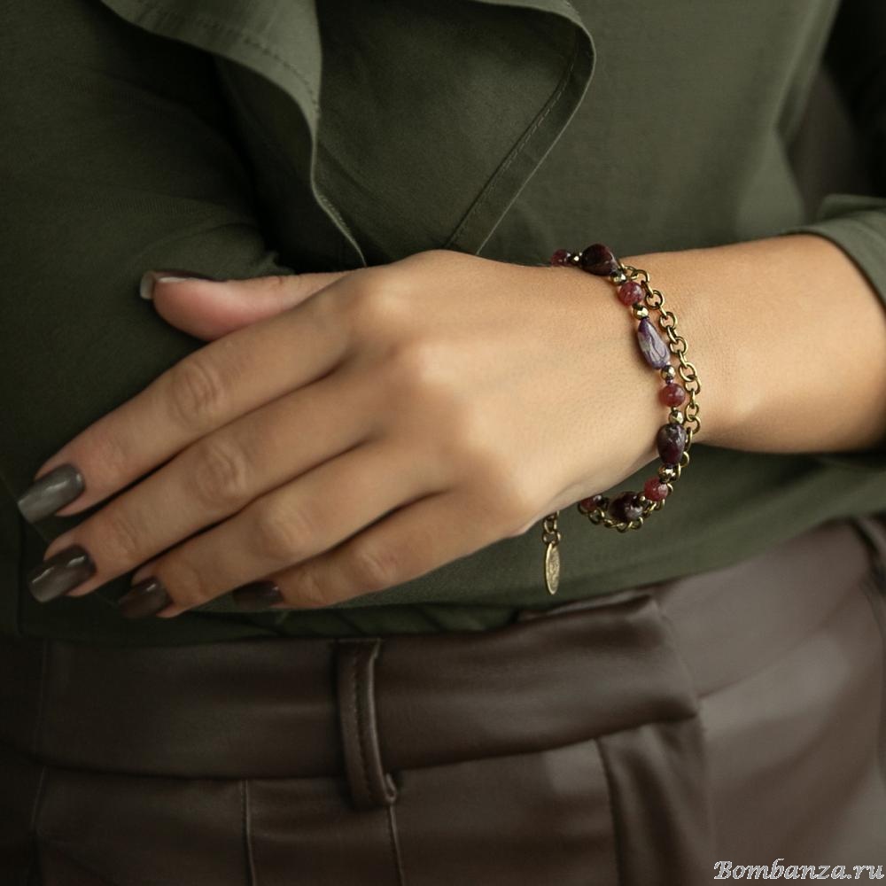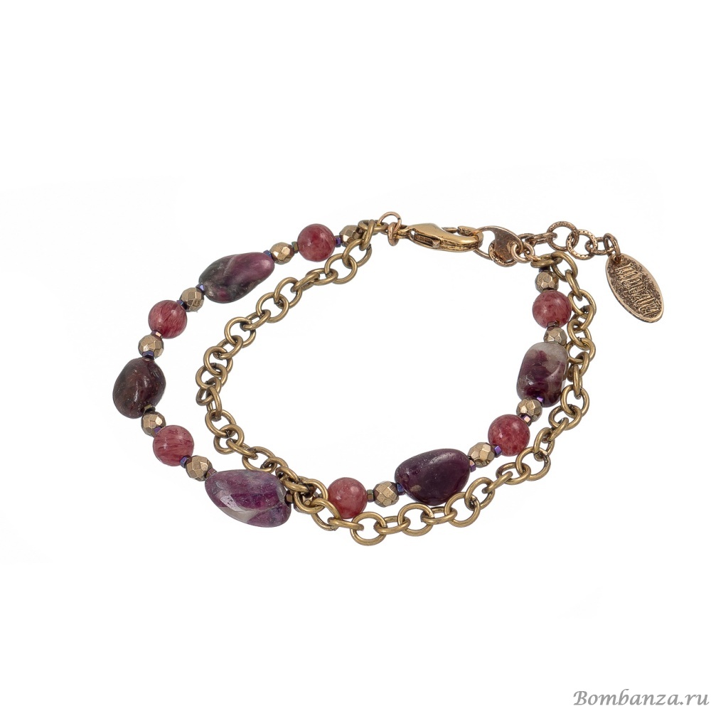 Основа материал для браслета: ювелирный сплавБраслет Elisir двойной от итальянского бренда Lanzerotti. Коллекция «Elisir» — ваш персональный рецепт безупречного стиля и внутренней гармонии. Подобно волшебному напитку, она соединяет в себе магию натуральных камней и актуальную палитру сезона. Браслет выполнен в виде двойной нити, что придаёт образу ощущение многослойности. Главным акцентом служат натуральные вставки клубничного кварца и турмалина фиолетовых оттенков, даря нежность и вдохновение. Браслет изготовлен на основе прочного бижутерного сплава с покрытием под «античное золото». Надёжный карабин обеспечивает удобную фиксацию на запястье.