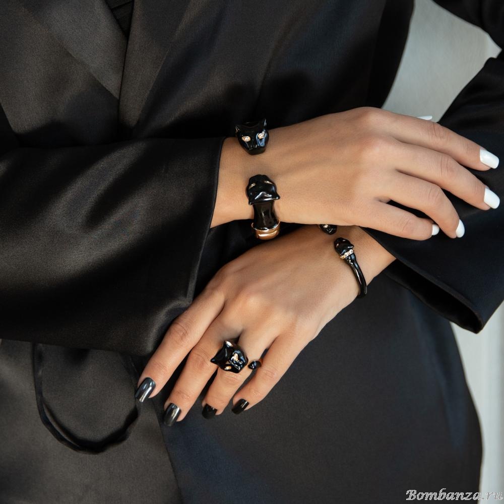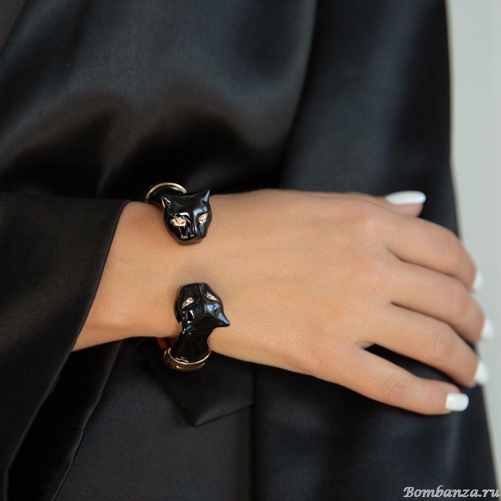 Особенности украшения: кафф, пантера с кристаллами и эмалью