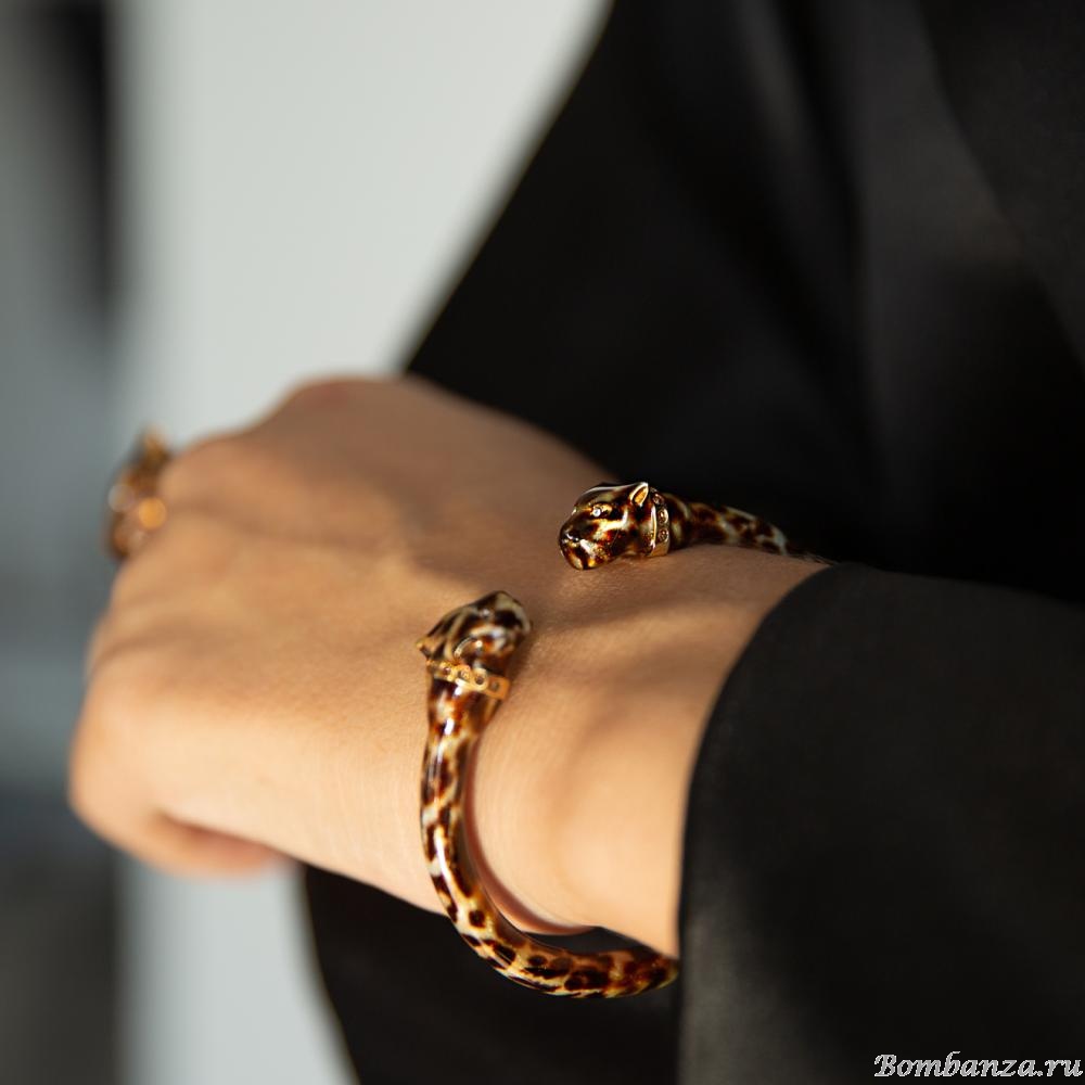 Особенности украшения: кафф, ягуар с кристаллами и эмалью