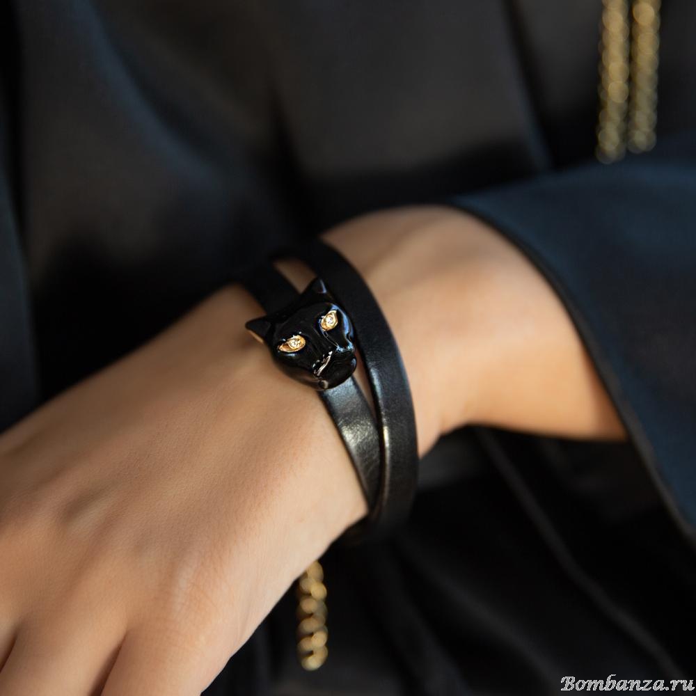 Особенности украшения: пантера с кристаллами, эмалью и кожей