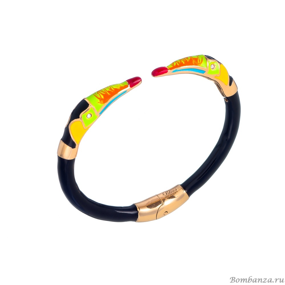 Особенности украшения: кафф, тукан с эмалью и кристаллами