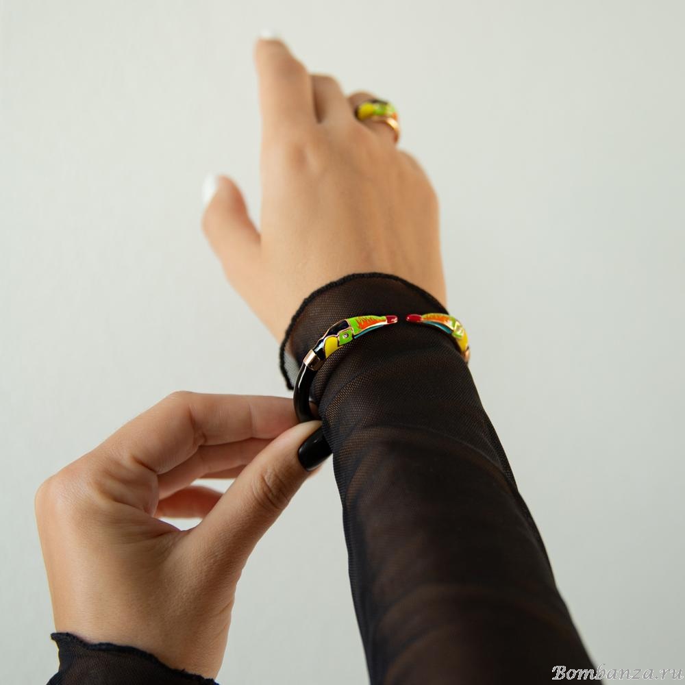 Основа материал для браслета: ювелирный сплавБраслет-кафф в виде тукана от итальянского бренда Polina Firenze. Эксклюзивный дизайн украшения вдохновлен экзотикой и природной красотой южноамериканских джунглей. Браслет изготовлен из высококачественного бижутерного сплава с золотым покрытием, что придаёт изделию роскошный вид. Особое внимание привлекает тукан, украшенный яркой эмалью и сверкающими кристаллами, которые эффектно играют на свету. Удобная форма каффа позволяет носить украшение без застежек — браслет легко надевается на запястье и комфортно держится в течение дня. Анималистический дизайн коллекций Polina Firenze для тех, кто любит яркие и выразительные образы и не боится выделяться среди окружающих.