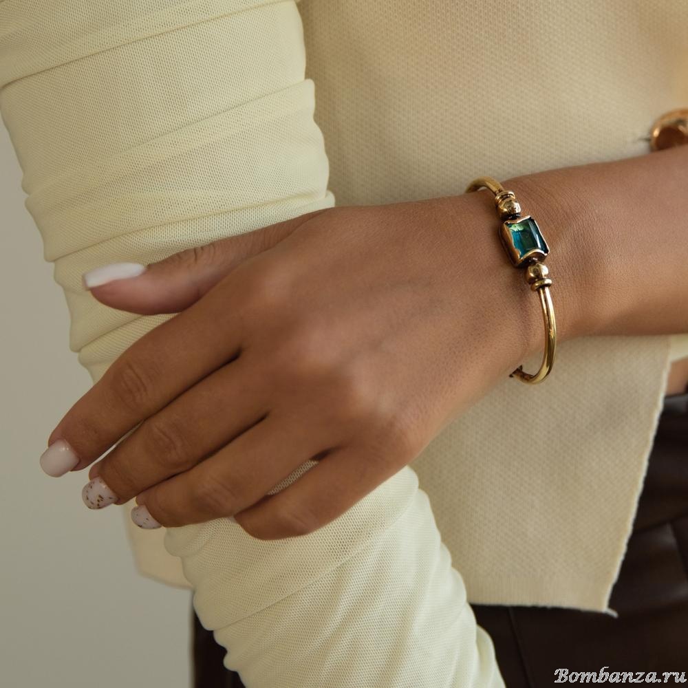 Браслет Thot Gioielli, кафф, с рейнстоуном, TG25.1-BRV21 аквамариновый.