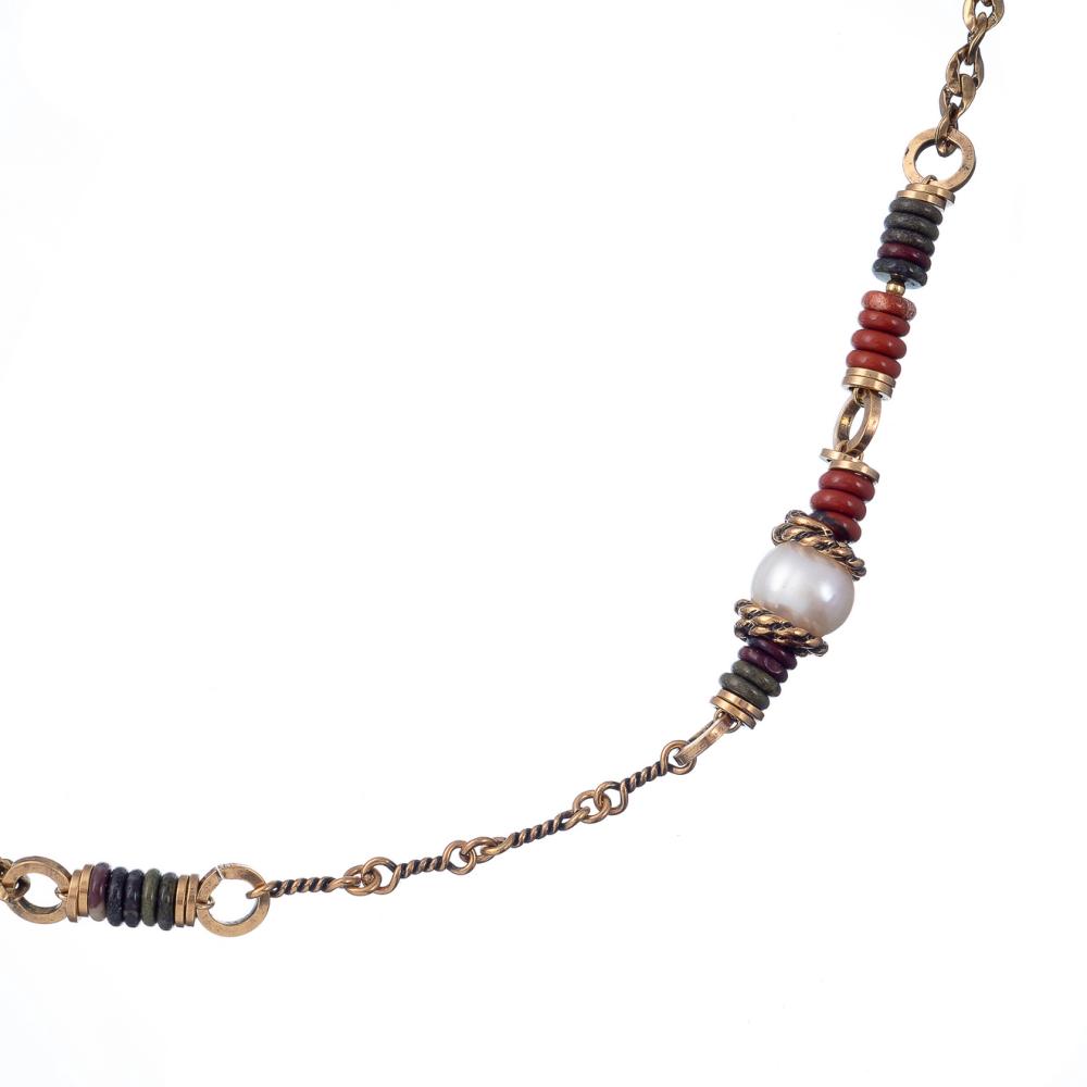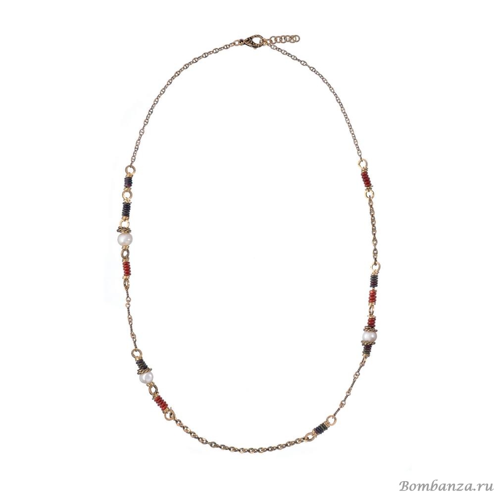 Украшения премиум класса.Колье с яшмой, агатом и жемчугом от итальянского бренда Alcozer&J. Эффектное сочетание натуральных камней — яшмы, агата и жемчуга — придаёт изделию особую глубину и благородство, а оригинальное дизайнерское решение делает украшение эксклюзивным, отражая характер своей обладательницы. Металл с покрытием цвета античного золота гармонично сочетается с насыщенными оттенками камней, создавая винтажное настроение и добавляя шарм. Колье оснащено удобным замком-карабином, который надёжно фиксирует украшение. Благодаря использованию качественного бижутерного сплава в качестве основы, изделие отличается прочностью и долговечностью.