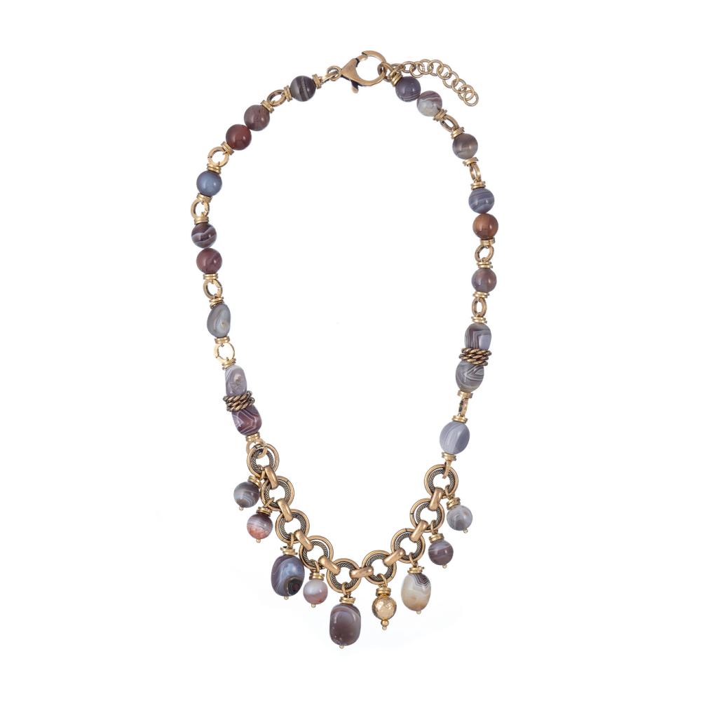 Украшения премиум класса.Колье с агатом от Alcozer&J — изысканное украшение для ценителей премиальной итальянской бижутерии. Изделие выполнено из прочного бижутерного сплава с покрытием в цвете «античное золото», что придаёт колье благородный винтажный вид. В качестве центрального элемента используется натуральный агат — камень, известный своей красотой и уникальными природными узорами. Каждый агат неповторим, поэтому ваше украшение будет единственным в своём роде, а его защитные свойства создадут ощущение стабильности и подарят умиротворение. Надёжный замок-карабин обеспечивает удобство и безопасность во время ношения.