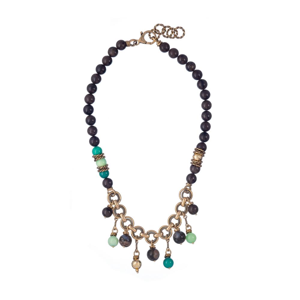 Украшения премиум класса.Колье с агатом и амазонитом от итальянского бренда Alcozer&J. Дизайн изделия гармонично сочетает в себе благородство натуральных камней и винтажную элегантность металла цвета «античное золото». Дуэт натуральных камней не только радует глаз, но и наполнен глубоким смыслом: агат символизирует внутреннее равновесие и защиту, а амазонит известен как источник успокоения и силы, помогающий выражать свои мысли четко и убедительно. Колье выполнено на прочной основе из бижутерного сплава, благодаря чему изделие отличается долговечностью и комфортом во время ношения. Замок-карабин обеспечивает надежную фиксацию украшения на шее и удобство застегивания.