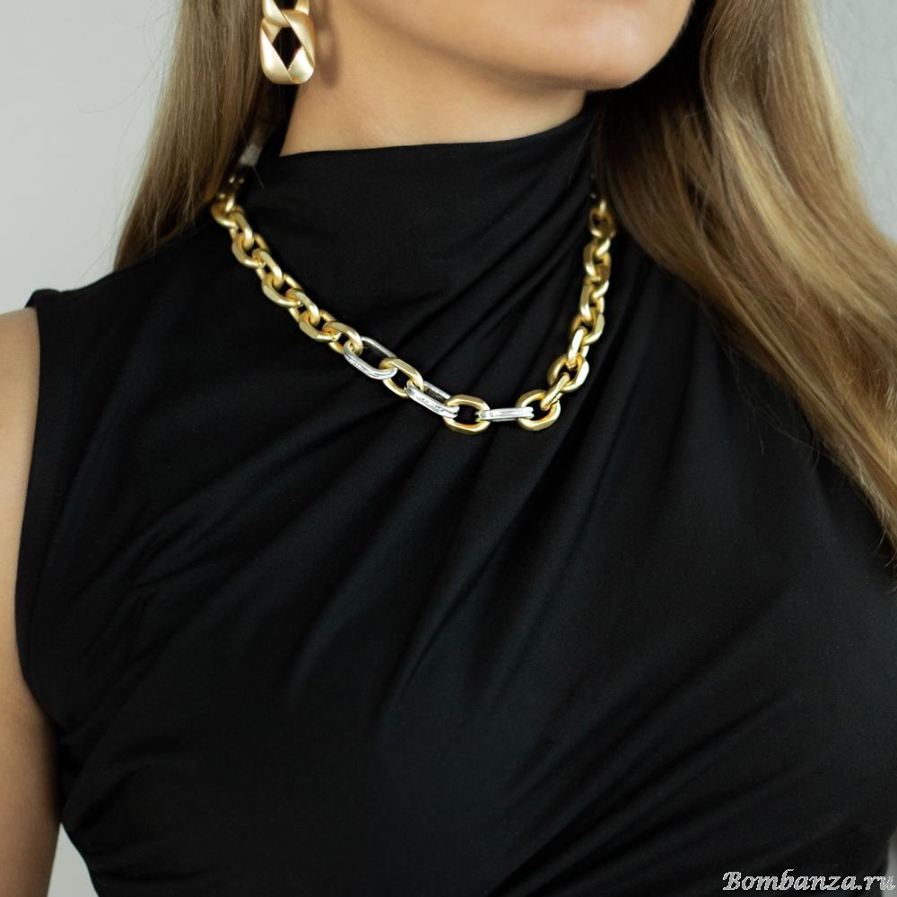 Основа материал для серёг: скандинавская стальКолье Tula из двухцветного металла от скандинавского бренда Dansk Copenhagen. Серия Tula отличается чистыми линиями и отсутствием лишних деталей. Прочные, легкие цепи лаконичного дизайна выполнены из стали высокого качества, поэтому украшения не окисляются и их можно носить даже на природе. Форма звеньев имеет плавные очертания, что придает образу элегантность и в то же время яркий характер. Колье имеет длину 53 см и изготовлено из высококачественной стали с серебрянным и золотым покрытием. Оно оснащено удобным замком карабинного типа, который обеспечивает надёжную фиксацию и лёгкость в использовании. Двухцветный металл добавляет универсальности и легко комбинируется с другими элементами гардероба.