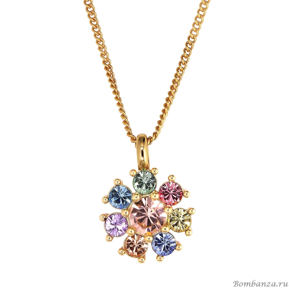 Размер изделия: 42 см + 5 см удлинитель Масса изделия: 8 г DELISE - романтичная цепочка на шею из нержавеющей стали в стиле ретро, украшенная подвеской из сверкающих кристаллов. Прекрасно смотрится как с простой рубашкой, так и с вечерним платьем. На фото представлено сочетание пастельных тонов на золотистой основе. Протестировано на аллергию и разработано в Дании.