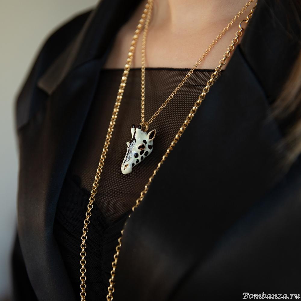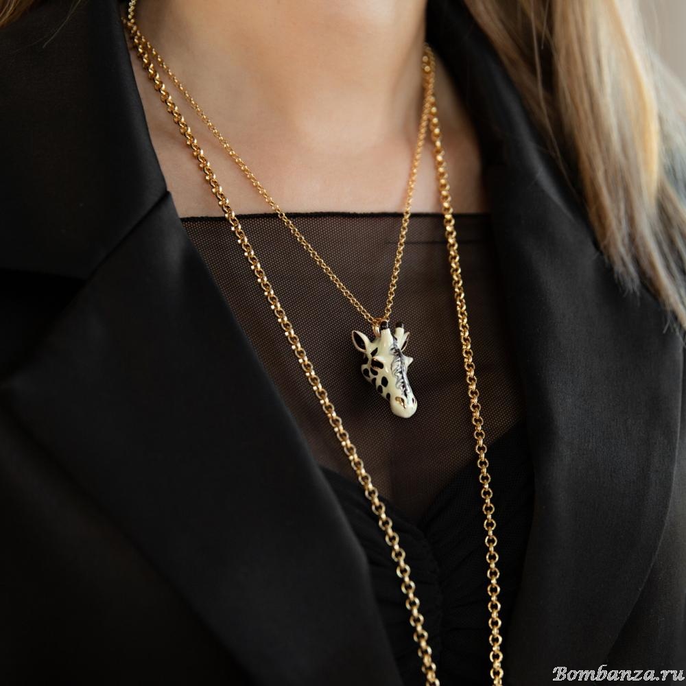 Основа материал для серёг: ювелирный сплав Колье жираф с эмалью от итальянского бренда Polina Firenze — изысканное украшение, которое станет стильным акцентом вашего образа. Оригинальная подвеска в виде жирафа покрыта яркой эмалью, что придаёт изделию уникальный шарм и делает его настоящей находкой для ценителей необычной итальянской бижутерии. Подвеска размером 4 см привлекает внимание своим детализированным исполнением и гармонично дополняет тонкую цепочку золотого цвета. Надёжный замок-карабин обеспечивает комфортную посадку и фиксацию изделия. Колье выполнено из качественного бижутерного сплава — материал гипоаллергенен и устойчив к повседневному ношению. Флорентийская эмаль высокого качества сохраняет яркость цвета на протяжении всего срока эксплуатации. Анималистический дизайн коллекций Polina Firenze для тех, кто любит яркие и выразительные образы и не боится выделяться среди окружающих.