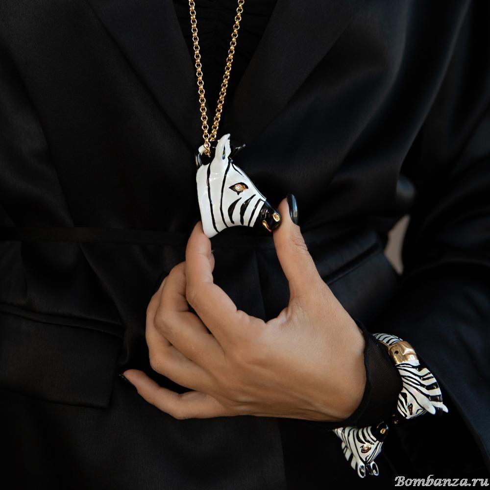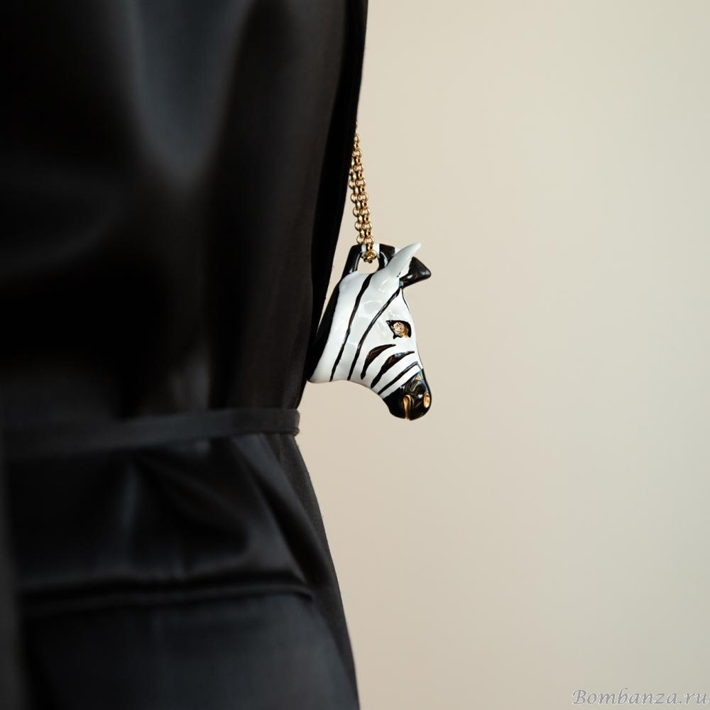Особенности украшения: зебра с кристаллами и эмалью