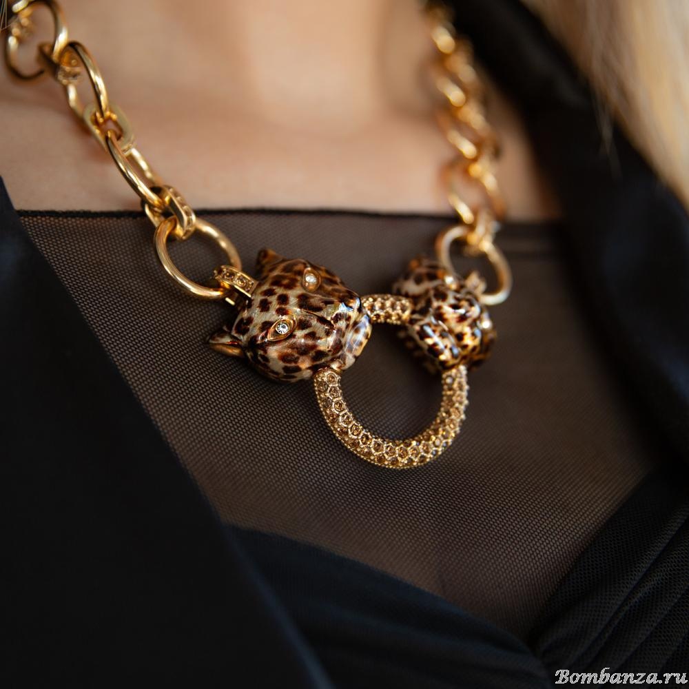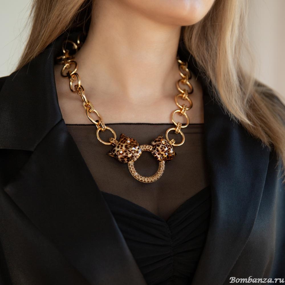 Основа материал для серёг: ювелирный сплав Колье ягуар с кристаллами и эмалью — изысканное украшение от итальянского бренда Polina Firenze, воплощающее страсть и элегантность. Оригинальный дизайн с ярким акцентом в виде головы ягуара, украшенной сверкающими кристаллами и цветной эмалью, придаёт образу эффектность и утонченность. Колье выполнено из качественного бижутерного сплава с благородным золотым покрытием, что гарантирует долговечность и устойчивость к износу. Длина изделия составляет 50 см — оптимальный размер для создания гармоничного акцента на шее. Надёжный замок-карабин обеспечивает удобную фиксацию украшения. Анималистический дизайн коллекций Polina Firenze для тех, кто любит яркие и выразительные образы и не боится выделяться среди окружающих.