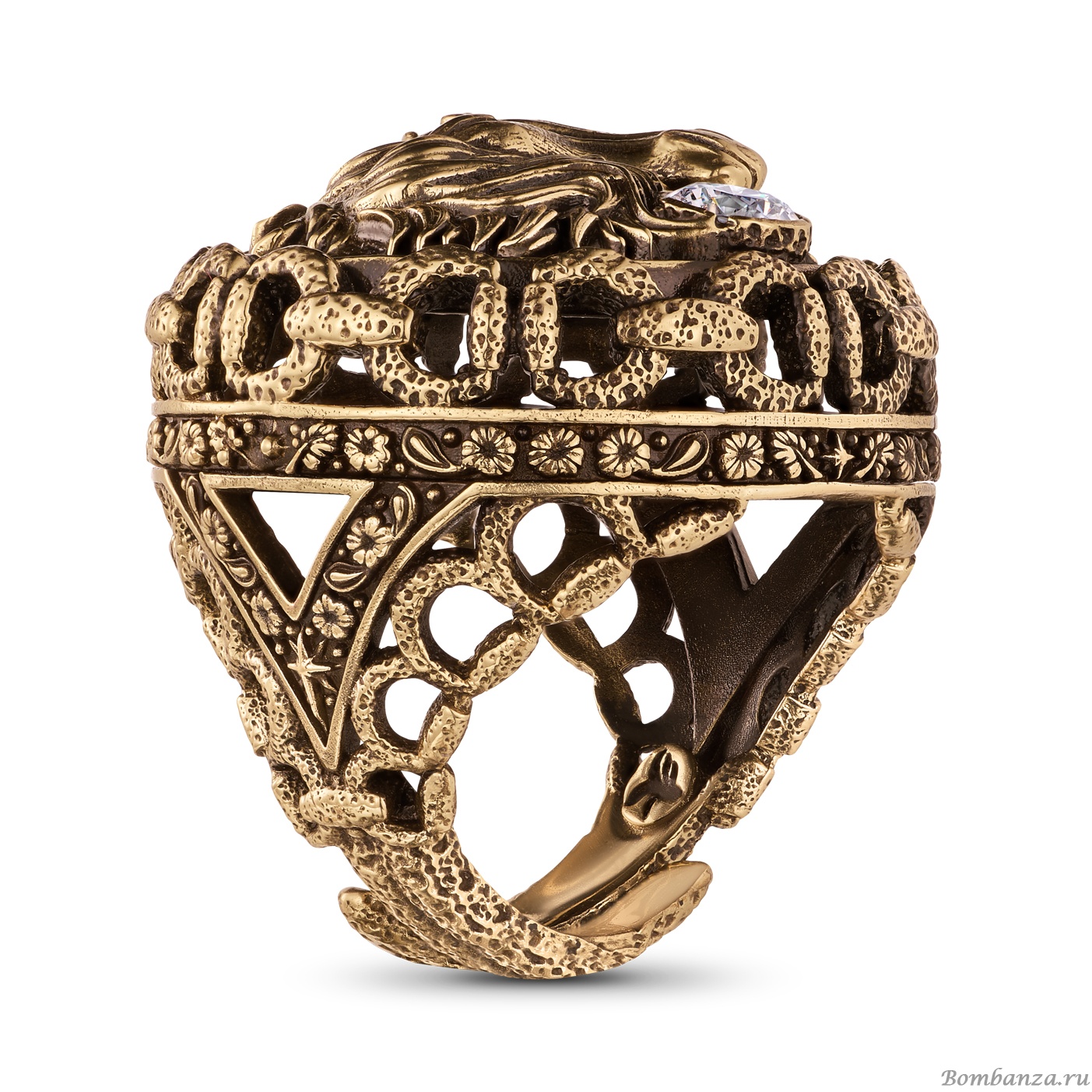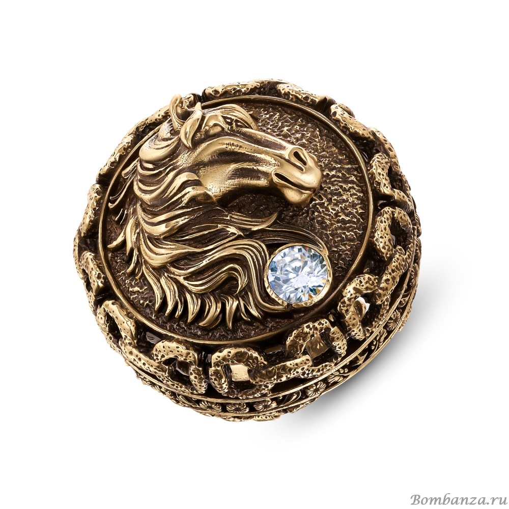 Кольцо ручной работы CAVALLO. Лошадь, это символ жизненной силы, красоты, грациозности, мощи и завораживающего гармоничного движения. Итальянский дизайн. Состав: ювелирный сплав - Brass (латунь), гальваническое покрытие - нанокерамика, патинирование, фианит. Цвет: античное золото, прозрачный. Размер: универсальный, возможность расставить шинку с 16 - 19 RUS. Вес: 22 гр. Хранение 1 Храните украшения в специальной шкатулке или в отдельных мешочках, чтобы они не соприкасались друг с другом. 2 Не допускайте контакта украшений с парфюмерией, водой, дезодорантами, маслами, мылом, шампунями и другими химикатами. 3 Снимайте украшения перед любыми водными процедурами, чтобы не повредить покрытие и сохранить их внешний вид. 4 Снимайте украшения перед занятиями спортом и сном. 5 Берегите украшения от случайных или намеренных ударов. Уход 1 Используйте мягкую плотную ткань, такую как микрофибра или фланель, для удаления пыли и загрязнений. 2 Не используйте агрессивные очистители, которые могут повредить декоративное покрытие. 3 Для более глубокой чистки обратитесь в ювелирные мастерские либо пункты ремонта ювелирных украшений.