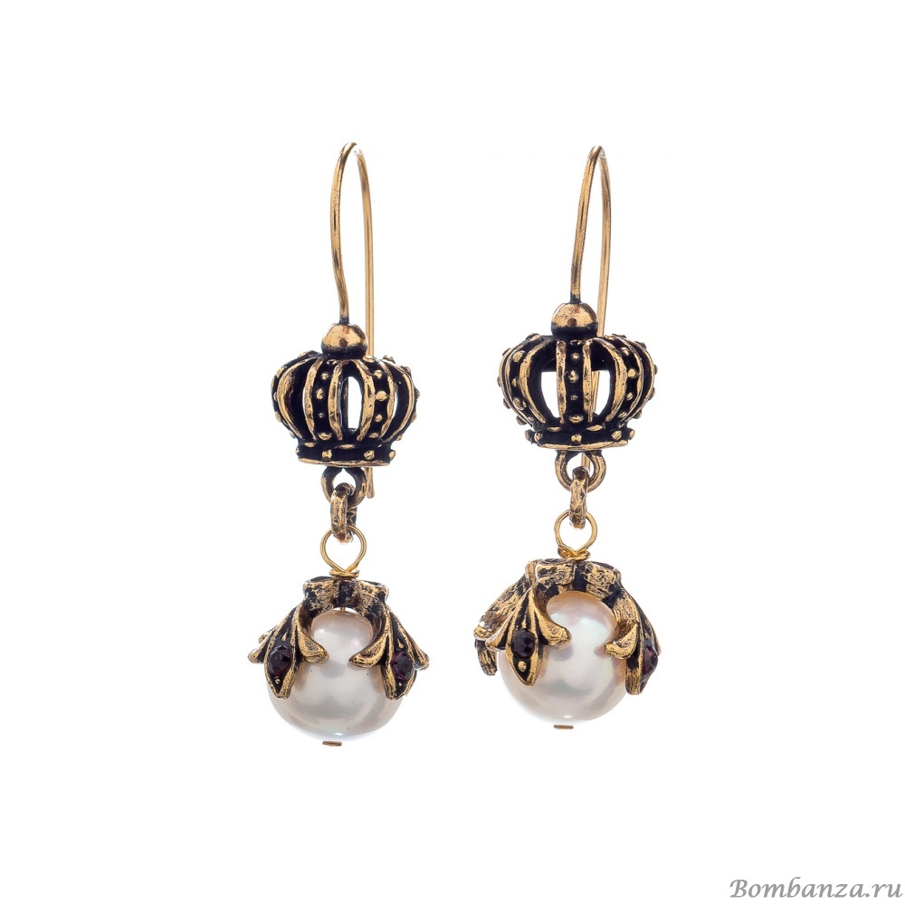 Серьги премиум класса.Серьги с жемчугом и гранатом от итальянского бренда Alcozer&J. Эти серьги выполнены из качественного бижутерного сплава с покрытием под античное золото, что придаёт им благородный и винтажный вид. Удобный замок-крючок обеспечивает лёгкость надевания и комфортную фиксацию на ушах. Основной акцент в дизайне — натуральный жемчуг и гранат, гармонично сочетающиеся между собой. Блеск жемчуга добавляет образу нежности и утончённости, а насыщенный цвет граната акцентирует внимание на вашей изысканности.