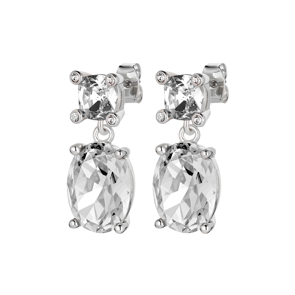 Размер изделия: 2,8 см Масса изделия: 4 г ANTONIA — элегантные и стильные серьги-подвески с двумя кристаллами фацетной огранки контрастных оттенков и округлой формы. Оба кристалла закреплены вручную в оправе из полированной латуни. Штифт изготовлен из хирургической стали. На фото — белый кристалл в серебряной оправе. Настоящая красота...