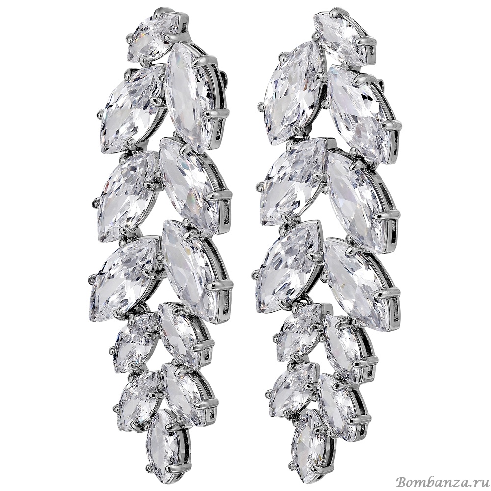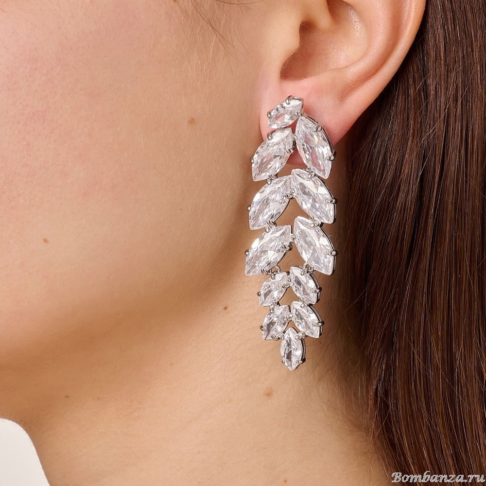 Размер изделия: 6 см Масса изделия: 13,6 г BANYAN — необыкновенные серьги, украшенные не менее чем двенадцатью ограненными кристаллами в форме листьев, образующими непрерывный узор, который создает иллюзию того, что хрустальные лепестки ласкают вашу шею. Поистине великолепный дизайн. Изготовлены из полированной латуни, фиксируются пусетным замком из хирургической стали. Представлены в сочетании белых кристаллов с серебристой отделкой. Датский дизайн, не содержит никеля.