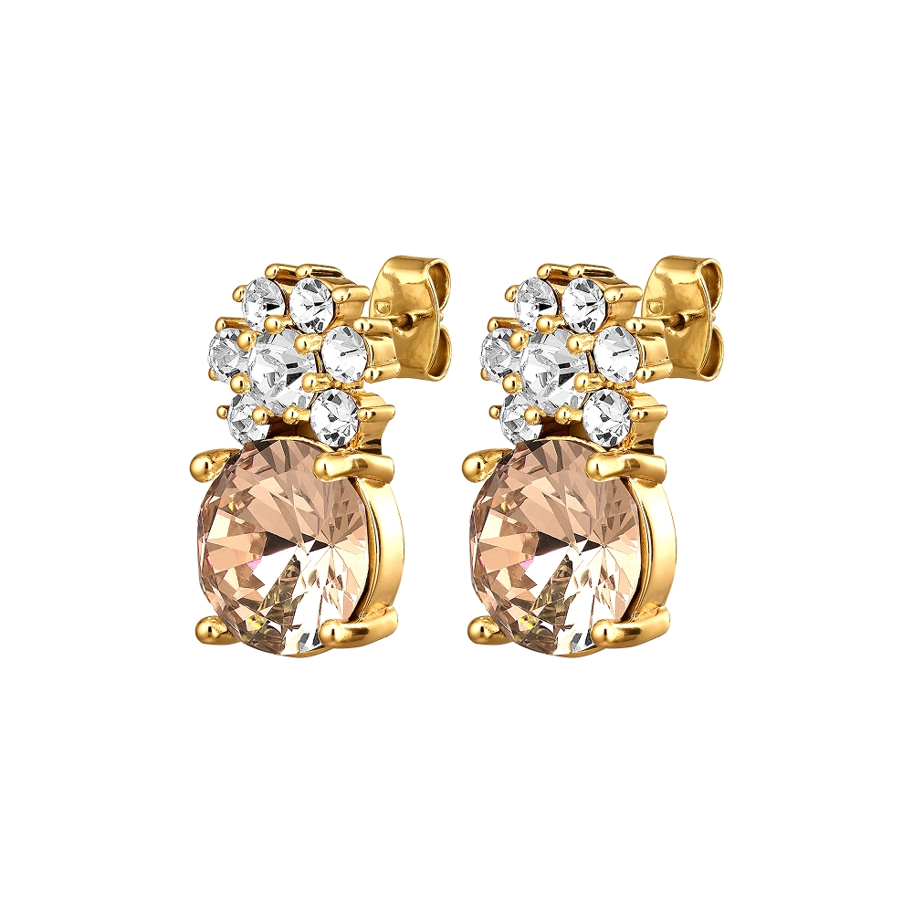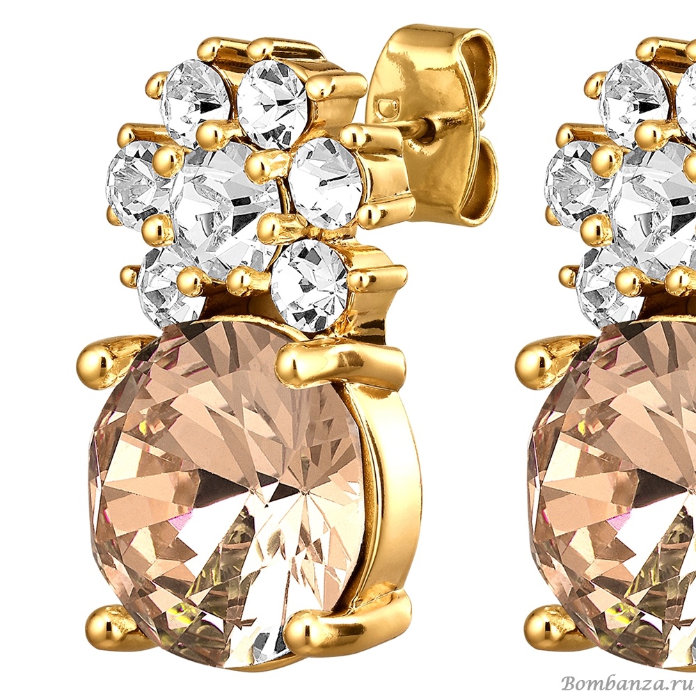 Размер изделия: 2,5 см Масса изделия: 5 г BECKIA — романтическая и привлекающая внимание модель сережек с крупным кулоном в сочетании с верхней частью, украшенной цветочным узором. Необычная и шикарная. Здесь представлено сочетание блестящего золота, белых и золотых кристаллов. ДАТСКИЙ ДИЗАЙН — не содержит кадмия, никеля и свинца.