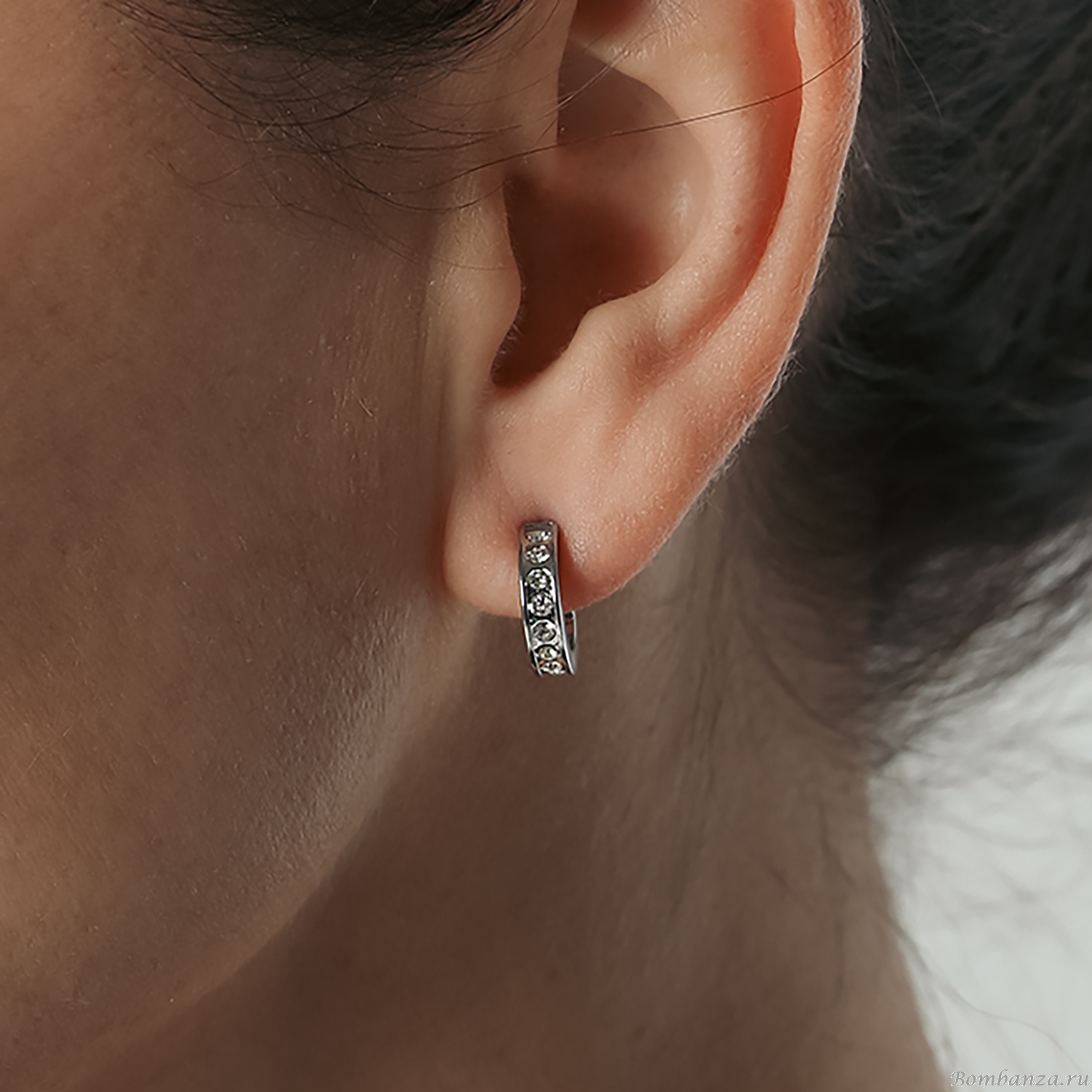 Современный взгляд на классические серьги-кольца, украшенные кристаллами. Здесь они выполнены в серебристом цвете с изящными прозрачными кристаллами Swarovski.