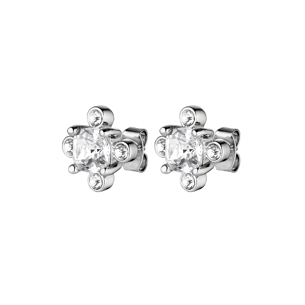 Размер изделия: 1 см Масса изделия: 2 г GIGI — это крошечные и эффектные пусеты с множеством кристаллов ручной огранки, расположенных в виде стилизованного цветочного мотива с четырьмя сторонами, вдохновлённого древними витражами. Представлены в блестящем серебристом цвете с белыми кристаллами. ДАТСКИЙ ДИЗАЙН — не содержит кадмия, свинца и никеля.