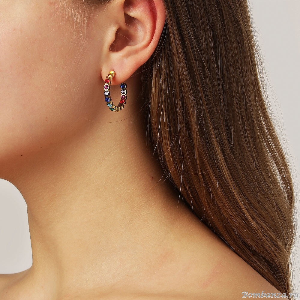 Размер изделия: 3 см Масса изделия: 3 г HOLLY — версия крупных сережек-колец с кристаллами. Эта версия Holly украшена комбинацией радужных кристаллов спереди и сзади. Изготовлены из полированной латуни с золотым покрытием. Штифт изготовлен из хирургической стали. ДАТСКИЙ ДИЗАЙН — не содержит кадмия, свинца и никеля. Просто потрясающе.