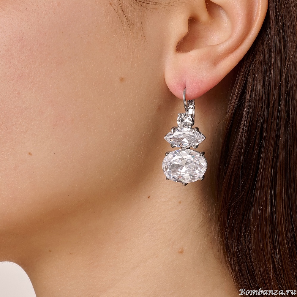 Размер изделия: 3 см Масса изделия: 7 г PARSANA — это декоративные женские серьги с французской застежкой из хирургической стали. Три гранёных кристалла создают красивую игру белого хрусталя на металле серебристого оттенка. Дизайн выполнен в Дании и, конечно же, не содержит никеля