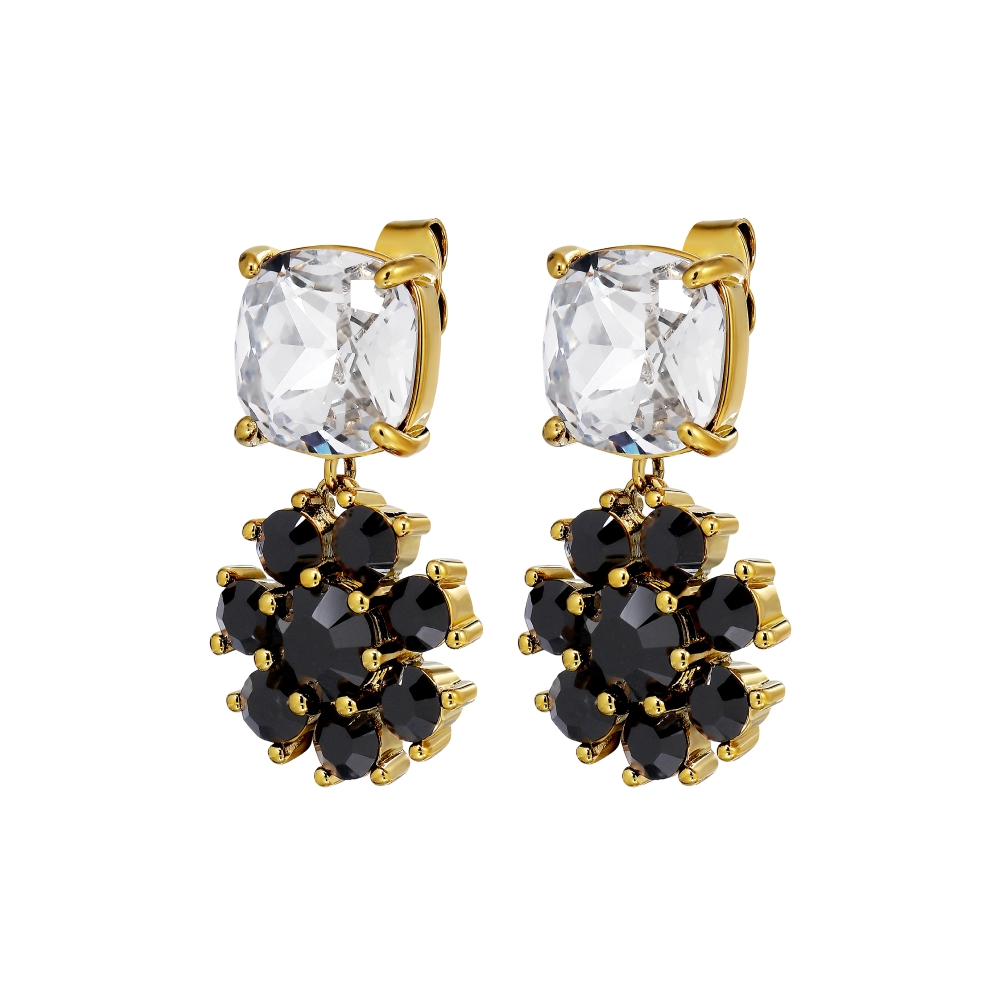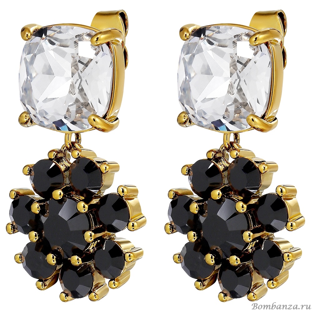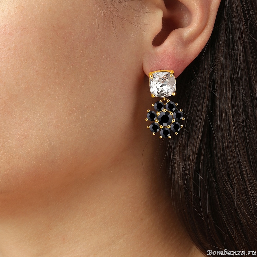 Размер изделия: 3 см Масса изделия: 7 г POPPY — большая хрустальная верхняя часть сочетается с подвеской в виде цветка с множеством кристаллов. Штифт изготовлен из хирургической стали, корпус — из полированной латуни. Здесь представлены угольно-черные и классические белые кристаллы на золотой основе. ДАТСКИЙ ДИЗАЙН — не содержит кадмия, никеля и свинца.
