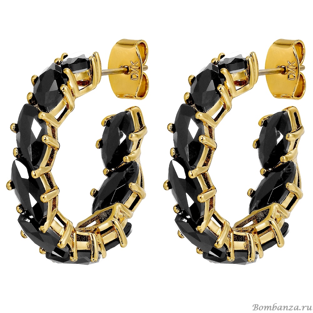 Размер изделия: 2,2 см Масса изделия: 3 г TAMARIN — это красивые крупные серьги-кольца с блестящими кристаллами. Крупные камни в форме листьев расположены в один ряд. Кольца Tamarind — это одновременно и уличный стиль, и верх элегантности. Изготовлены из полированной латуни, представлены в золотом исполнении. Кристаллы эффектные и красивые, цвета воронова крыла. Штифт изготовлен из хирургической стали. Не содержит никель, свинец и кадмий. Датский дизайн