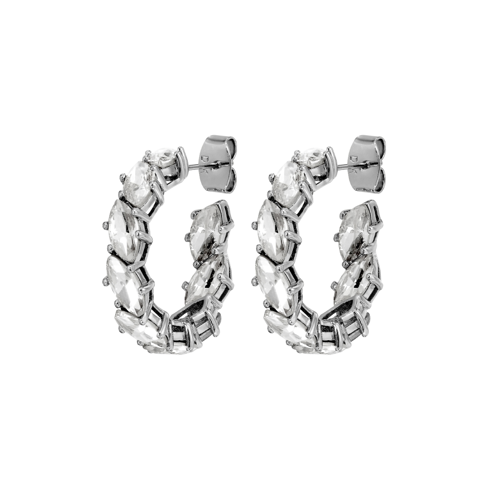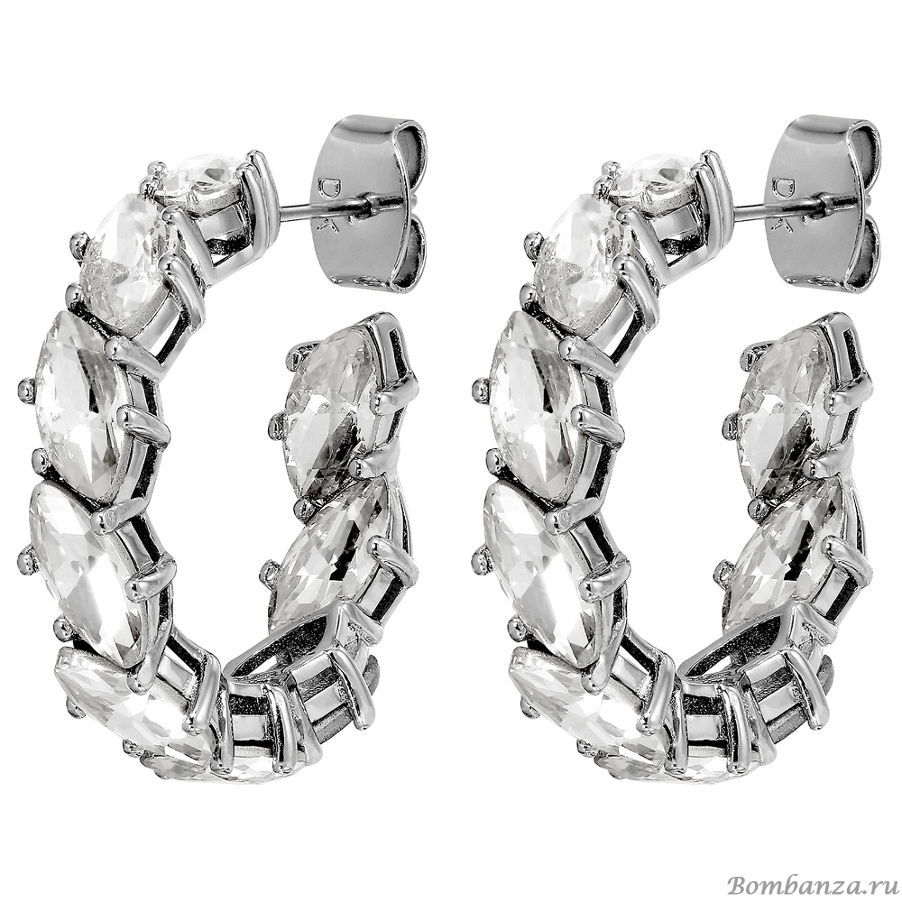 Размер изделия: 2,2 см Масса изделия: 3 г TAMARIN — это красивые крупные серьги-кольца с блестящими кристаллами. Крупные камни в форме листьев расположены в один ряд. Кольца Tamarind — это одновременно и уличный стиль, и верх элегантности. Изготовлены из полированной латуни, представлены в серебристом цвете. Кристаллы — классические белые. Штифт изготовлен из хирургической стали в датском стиле. Не содержит никель, свинец и кадмий. Они необыкновенные...