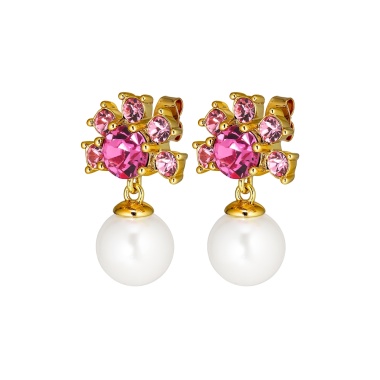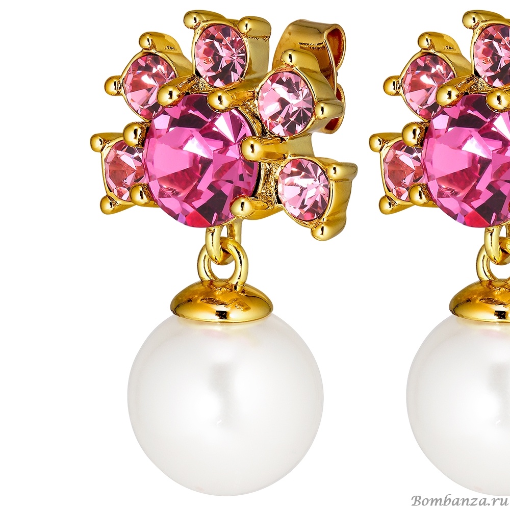 Размер изделия: 2,5 см VERONICA — это серьги-гвоздики в стиле ретро, напоминающие о 1980-х годах. Крупная подвеска из искусственного жемчуга находится под инкрустированной кристаллами верхней частью в форме полумесяца. Изготовлены из полированной латуни, крючок для серьги — из хирургической стали. Здесь представлены в золотистом цвете с сочетанием розового и светло-розового оттенков ,под ними — белый жемчуг. Датский дизайн без никеля. И просто потрясающие.