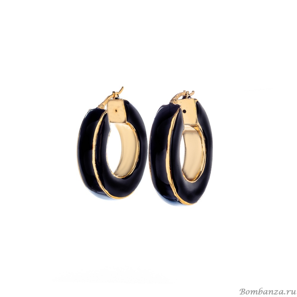 Серьги Francesca Bianchi, кольца, с эмалью, FB25.2-52S черный. Доставка бесплатно.