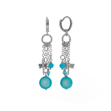Основа материал для серёг: ювелирный сплавИзысканные серьги Marino с говлитом, бирюзой и кошачьим глазом от итальянского бренда Lanzerotti. Коллекция Marino - Морская - яркая серия украшений, вдохновленная морскими лазурными пейзажами. Серьги выполнены из высококачественного бижутерного сплава, что обеспечивает их долговечность и безопасность для чувствительной кожи. Длина изделия составляет 6 см, что делает его идеальным для тех, кто предпочитает выразительные и заметные аксессуары. Особое внимание привлекает комбинация вставок из говлита, бирюзы и кошачьего глаза. Говлит выгодно подчеркивает яркость насыщенной бирюзы, а кошачий глаз придает изделию загадочности благодаря уникальным переливам. Серьги оснащены надежным замком типа левербек, который обеспечивает комфортное ношение и надежную фиксацию украшения на ухе.